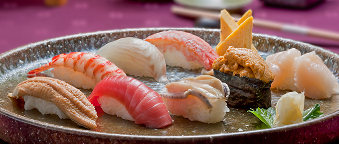 At "Sushi Nagada," we offer seasonal seafood, primarily caught in the Sanriku region known for its abundant fishing grounds, as well as other seasonal seafood sourced from various regions, all served as nigiri sushi.