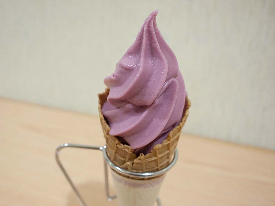 Spinach is also used in sweets. The "spinach soft serve ice cream," which has spinach paste mixed in, has no grassy taste and a gentle flavor. The sweet and sour taste is irresistible! Be sure to try the rich "wild grape" flavored soft serve ice cream as well.