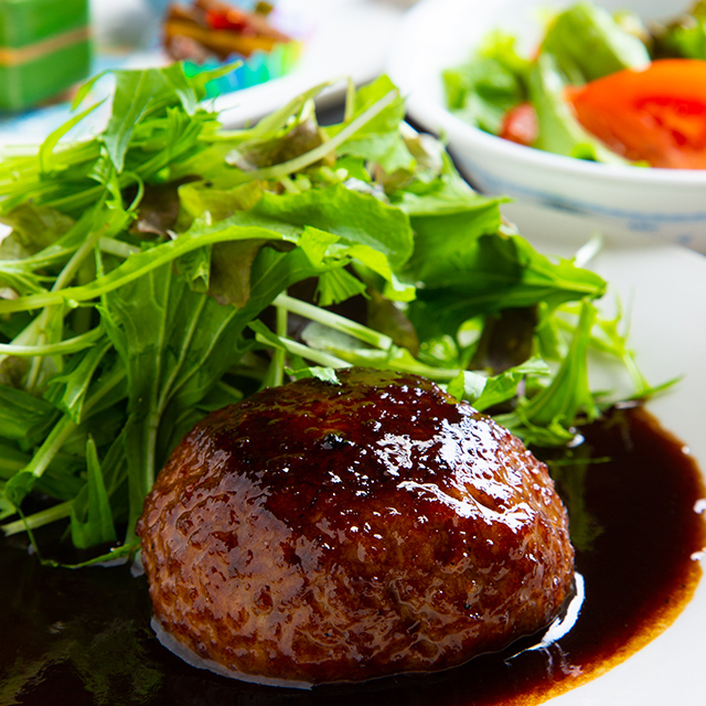 We primarily use ingredients sourced from Iwate Prefecture, and our recommendation is the "Marbled Maesawa Beef Hamburger Steak Lunch." Enjoy a hamburger made with the premium brand beef "Maesawa Beef," served with either "Ginga no Shizuku" rice from Iwate Prefecture or mixed grain rice!
