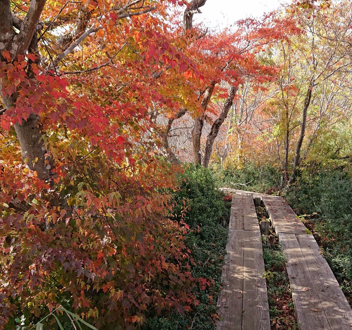 Wetland plants bloom along the walking paths from spring through midsummer. Skunk cabbage flowers from April to July, water crowfoot from May to August, cottongrass and dwarf rhododendron in June and July, and deer cabbage in July and August. Come autumn, the landscape bursts into flames of red and orange with the autumn foliage.