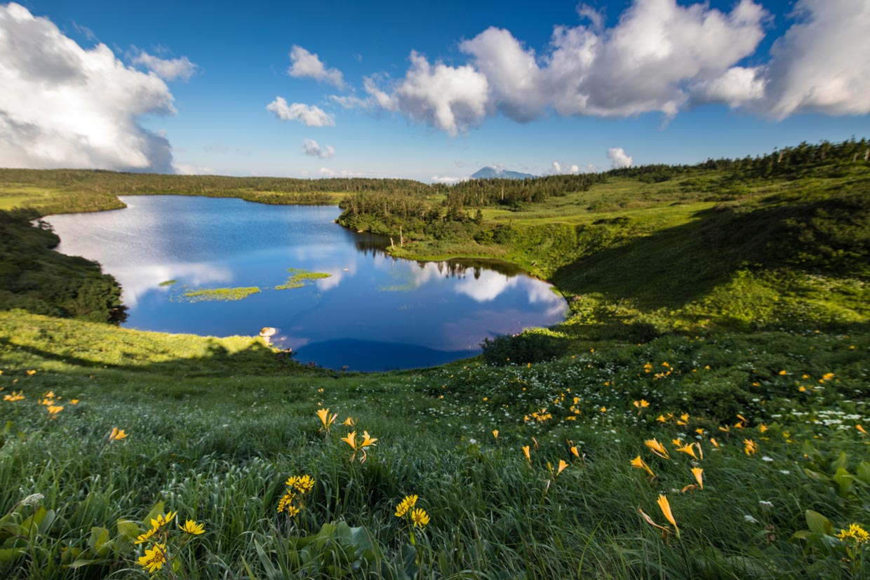 Near the summit of the Hachimantai Aspite Line, where it intersects with the Hachimantai Jukai Line, lies a popular trail that winds through beautiful alpine wetlands surrounding Hachimantai Marsh and Kagami Marsh. The trail is very well-maintained and features boardwalks through the marsh areas.