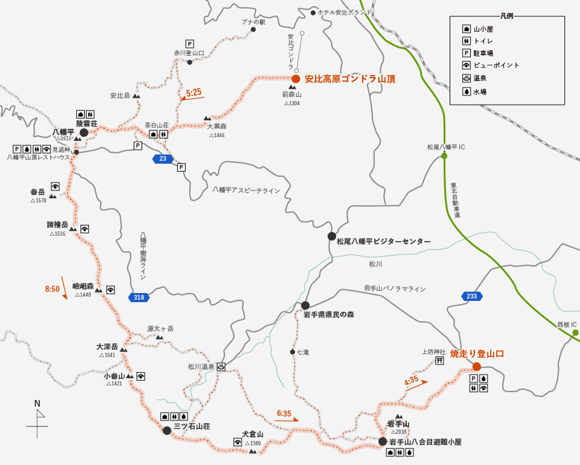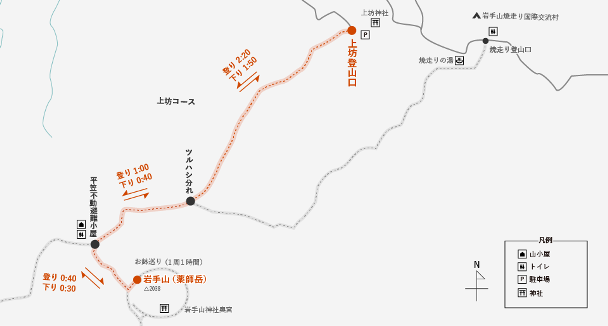 | Iwate-san Eighth Station Shelter → Yakibashiri Trailhead | 4 hours and 35 minutes |