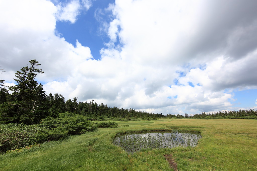 At the foothills where Mount Chausu and Hachimantai intersect, the earth is black with peat. When the deep winter snow melts in spring, the vast black valley peatlands bloom with aquatic plants like fringed galax and other wetland flora thriving among last year's dead grass. In summer, geranium, deer cabbage, and small daikon-sou flowers sway in the wind. In autumn, clusters of gentian dye the landscape a vivid purple.