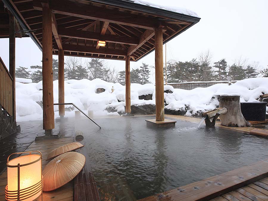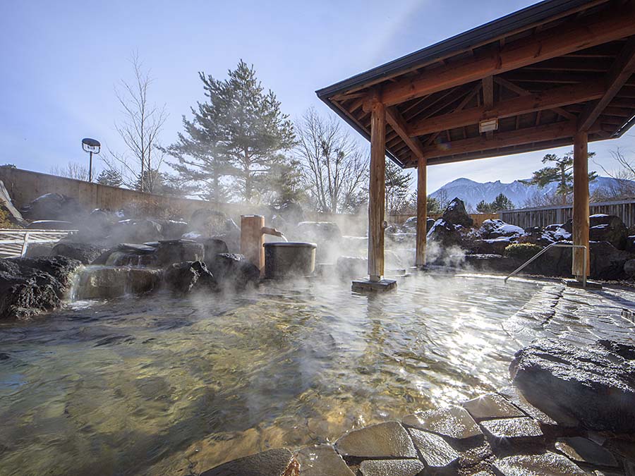 large public bath with its abundant hot spring water, and the garden-style open-air rock bath and cypress bath where you can enjoy the scenery of the four seasons.