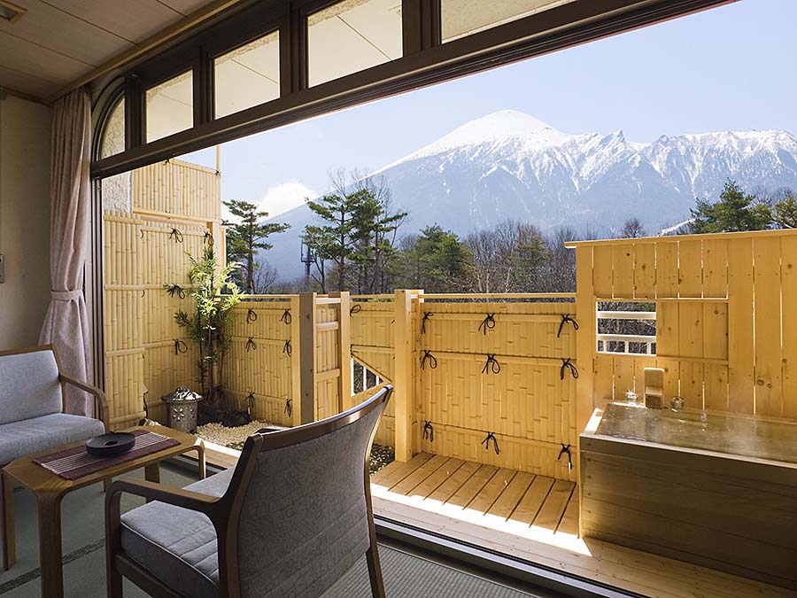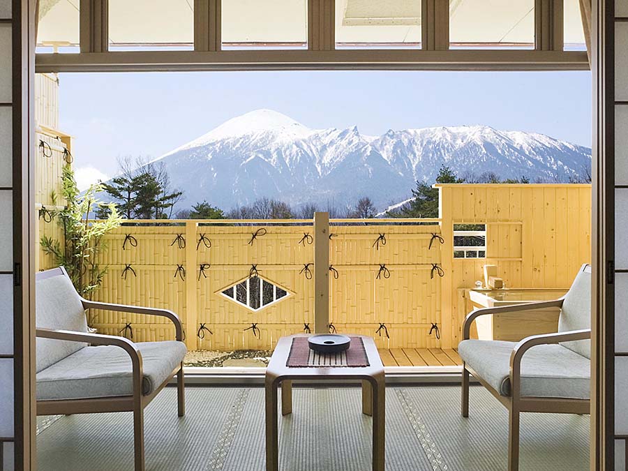 Hachimantai Heights offers a luxurious experience in a private forest, with the majestic Mt. Iwate right before your eyes. Enjoy the