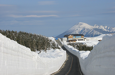 Every March, snow is cleared from the Hachimantai Aspite Line and Hachimantai Jukai Line, which lead to the summit of Hachimantai Mountain and are closed off by gates during winter. By mid-April, the corridor flanked by towering walls of snow opens. This is the longest such corridor in all of Japan, and the view is truly spectacular. The contrast between the blue sky and the white spring snow is incredibly beautiful. And during this same season, you can enjoy viewing cherry blossoms at the base of the mountain.