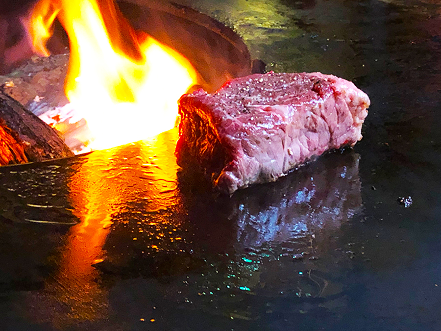 「安比ロッキーイン」の「南部鉄器」バーベキューは、岩手県産の肉と野菜を「南部鉄器」のフライパンでジュージュー焼き上げる豪快なスタイル!クラフトビアバーもあり、肉と酒のコンビで食が進みます。その他「ロッキー焼きカレー」も土日祝日限定で用意。親鳥からとったスープがカレーのコクを引き出している、癖になる一皿です。