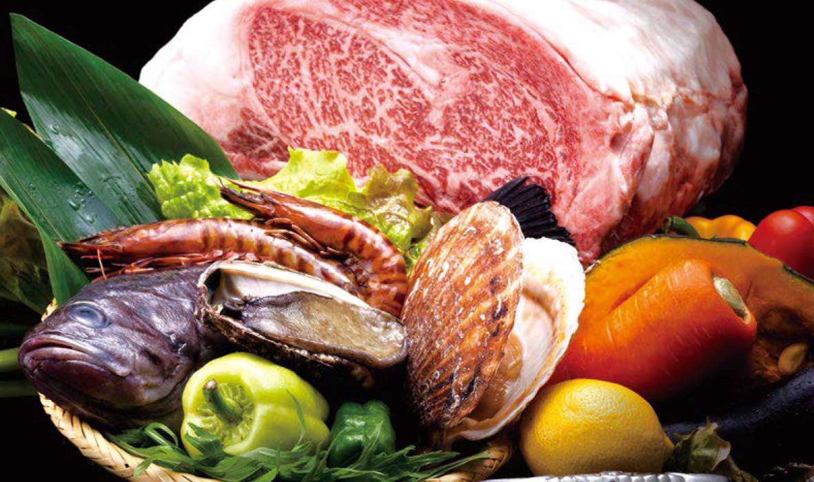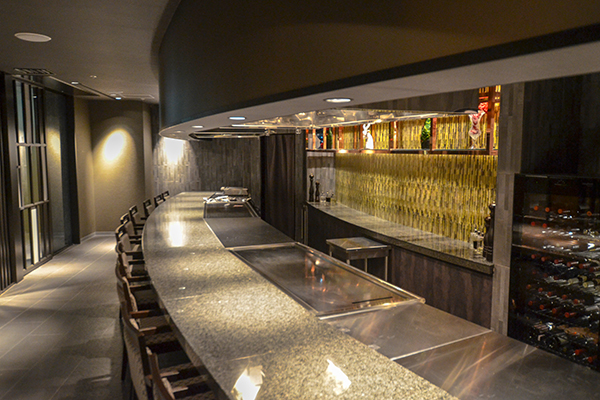 「鉄板焼 華山」のライブ感溢れるオープン鉄板カウンターで焼き上げるのは、短角牛、前沢牛、三陸の魚介と、岩手県産食材が中心。