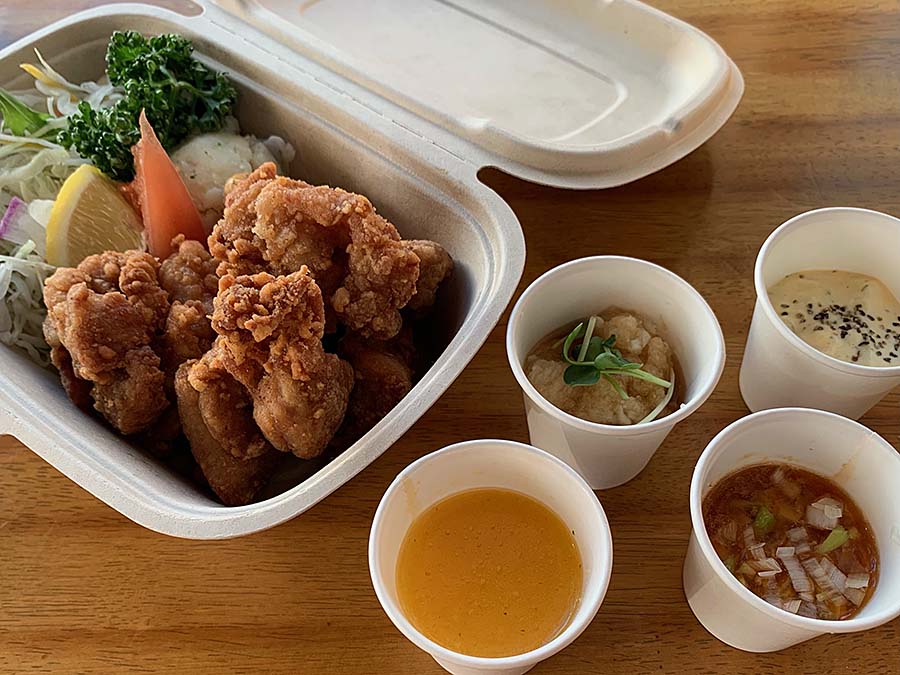 テイクアウトも充実しており、「タコライス」や「からあげ」など提供しています。ランチからディナー、一人からファミリーまで楽しめる食堂です。