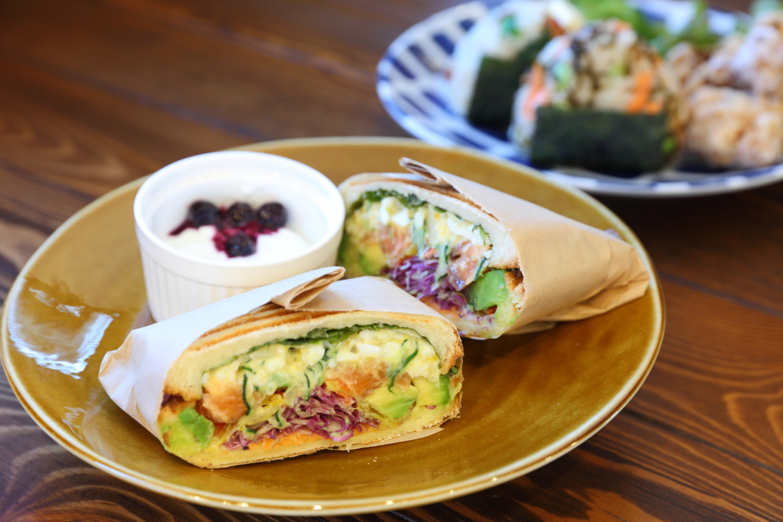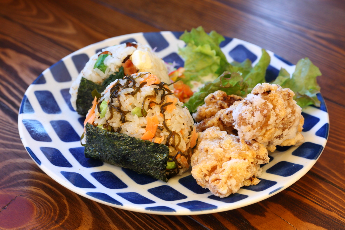 お勧めは、「Onigiriプレート」。好みのおにぎり+塩麹からあげがセットのプレートで、おにぎりは、焼きあごだしの風味が豊かなお米とごろごろ具沢山の内容。おにぎりの種類は、鮭&枝豆&塩昆布、焼きたらこ&葉わさび醤油、焼豚&小松菜&クリームチーズ、ねぎ塩豚肉&ワカメと、どれにしようか?迷ってしまいそう。
