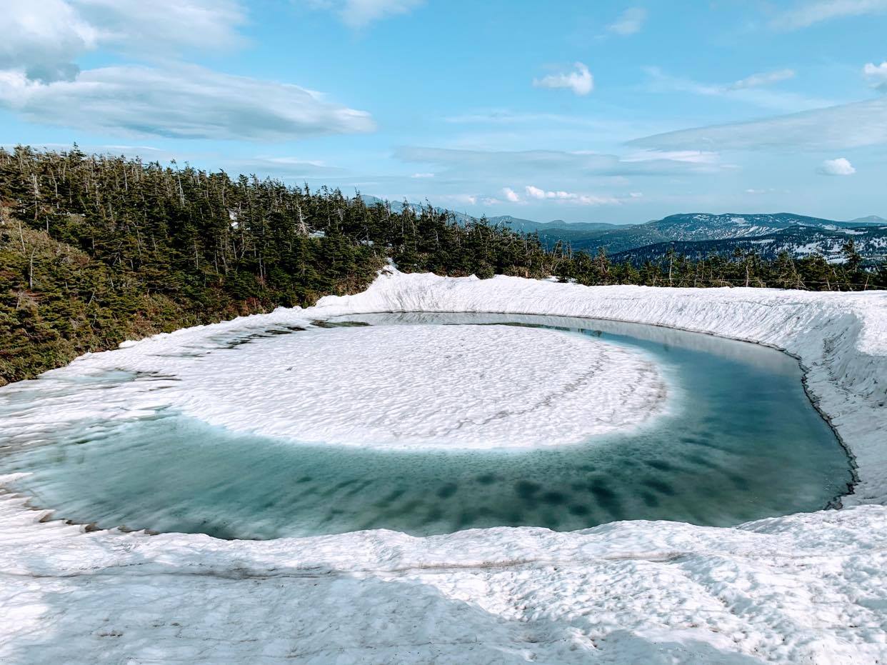 5月下旬から6月中旬にかけて、八幡平山頂近くの鏡沼で雪が溶けると、白い雪に映える深い透明な青色の水が非常に美しいだけでなく、近年ではその姿が龍の目に似ているとして有名になっています。水面を見つめてみてください、もしかすると水もあなたを見つめ返してくれるかもしれません…