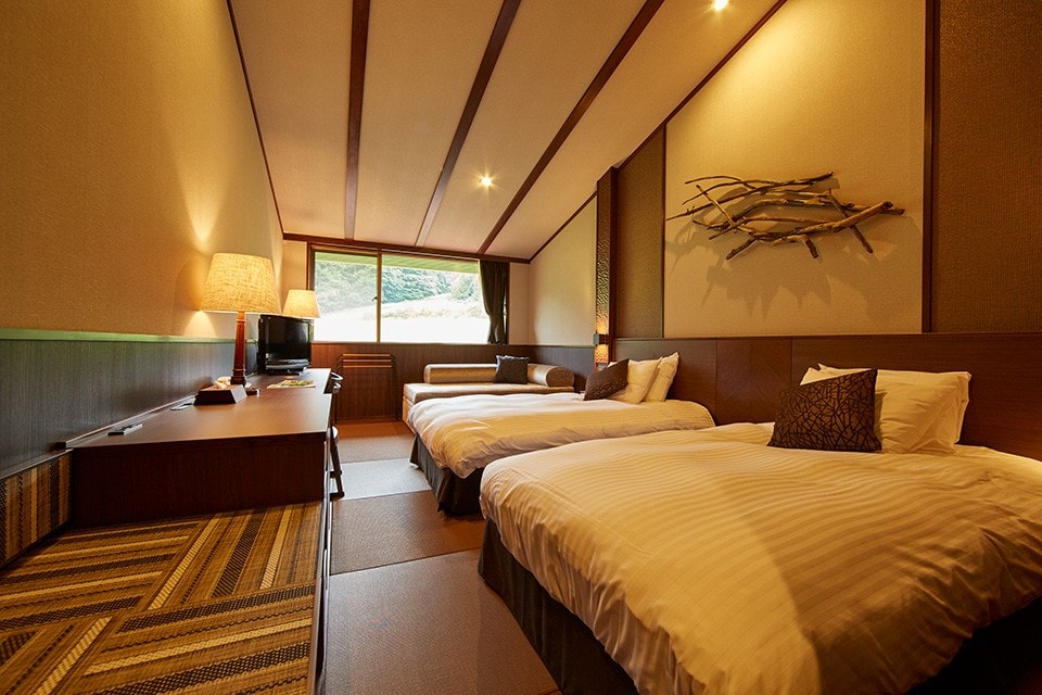 露天風呂でリラックスしながら、一方には壮大にそびえ立つ岩手山の素晴らしいパノラマビュー、そして他方には茶臼岳を楽しむことができます。