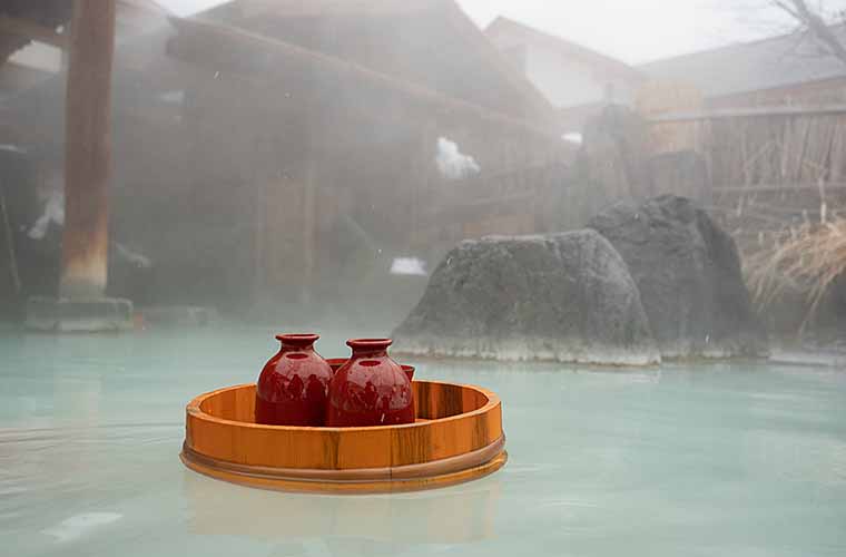 松川温泉エリアの2つの宿泊施設は、日帰り利用者や宿泊客が一年中訪れる人気宿です。この火山帯の白濁した水は硫黄泉から来ています。これらは典型的な鉱物沈殿物である「湯花」を持ち、茹でた卵を思わせる特徴的な香りがあります。また、温泉で作る温泉卵用に新鮮な卵が軽食メニューにあることにも驚かないでしょう。これらの卵は「温泉卵」と呼ばれ、地熱エネルギーで調理され、日本全国の温泉地で人気のおやつやお土産です。
