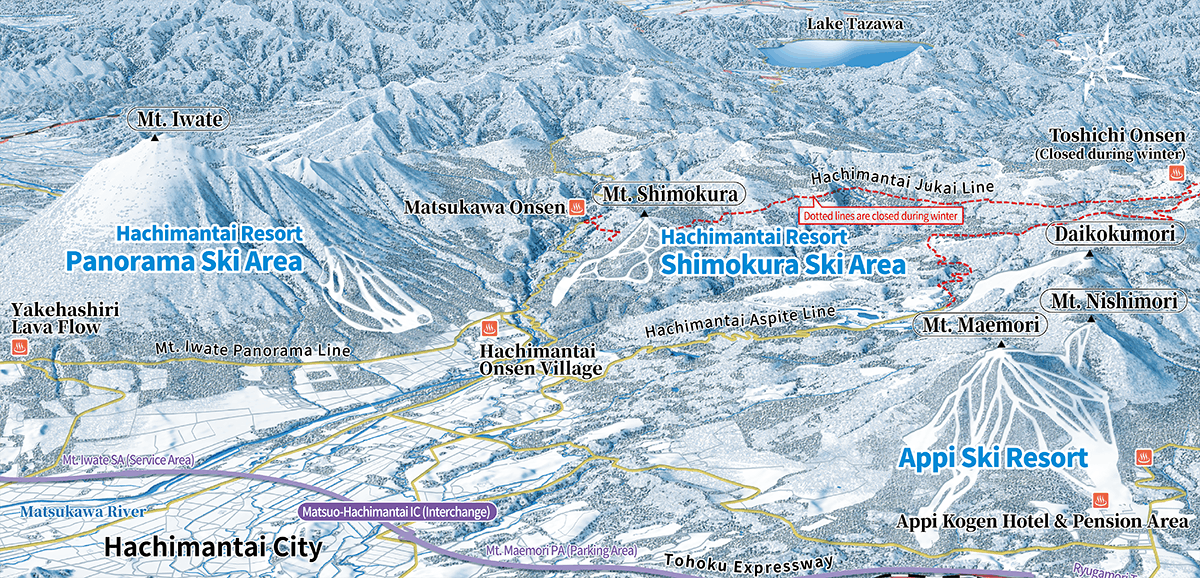 「安比高原スキー場」、「下倉スキー場」、「パノラマスキー場」。