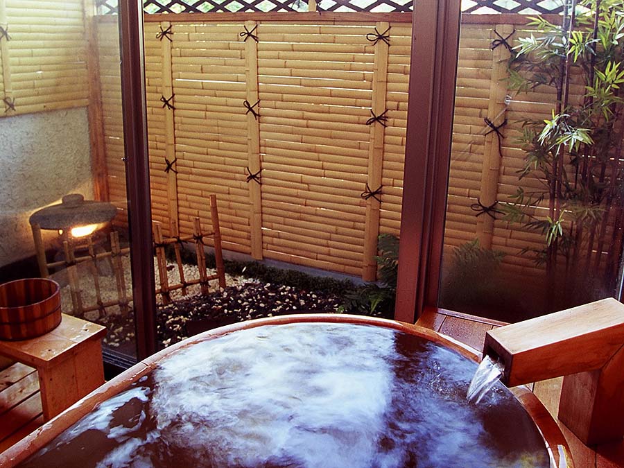 豊富な湯量に恵まれた大浴場と、四季折々の風景を楽しめる庭園風露天岩風呂・露天檜風呂。