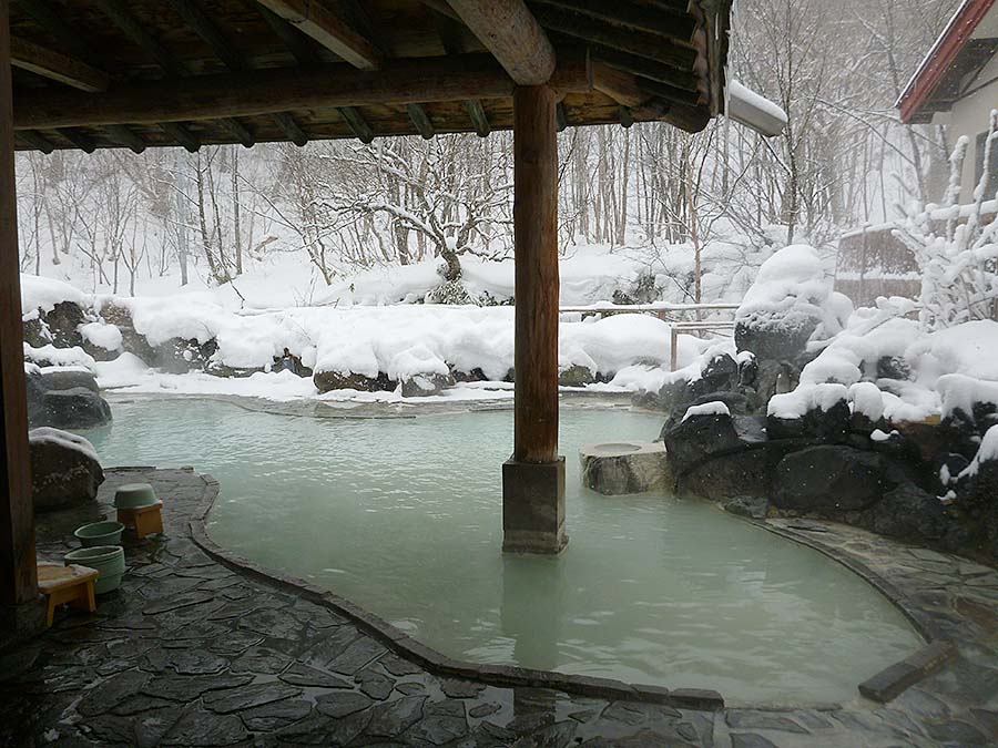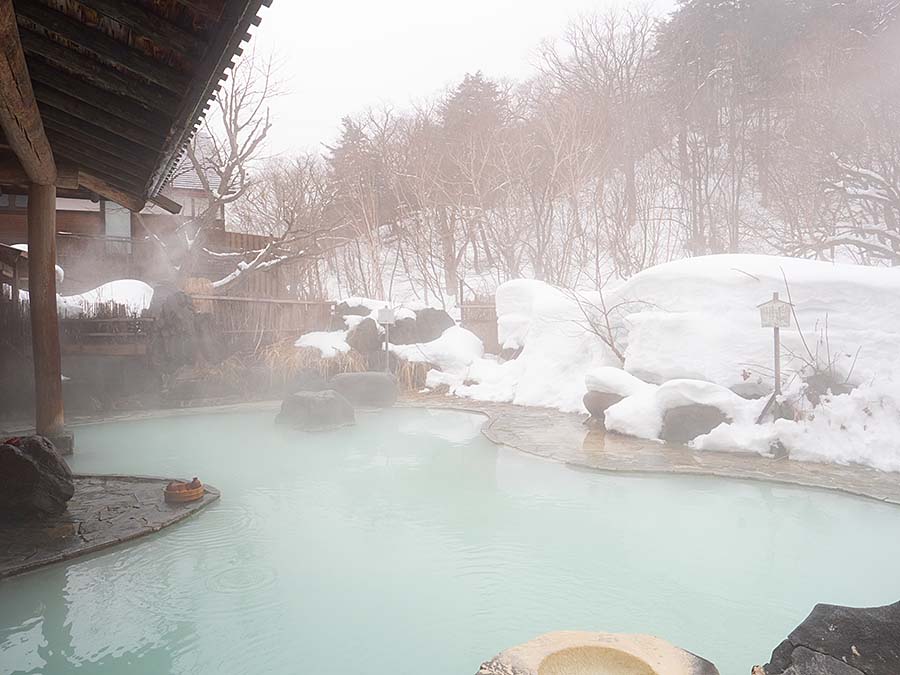 2種類の高温と低温の温泉は源泉掛け流し100%で乳白色の美しいお湯が特徴。