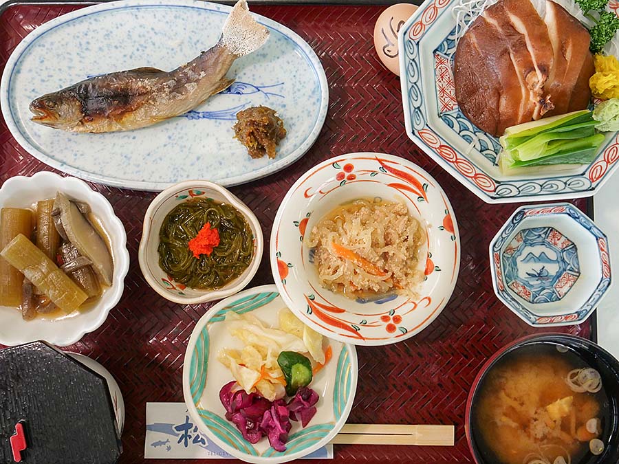 お楽しみは何といっても松川温泉のお湯で作る温泉卵!温泉独特の茹で具合が癖になります。