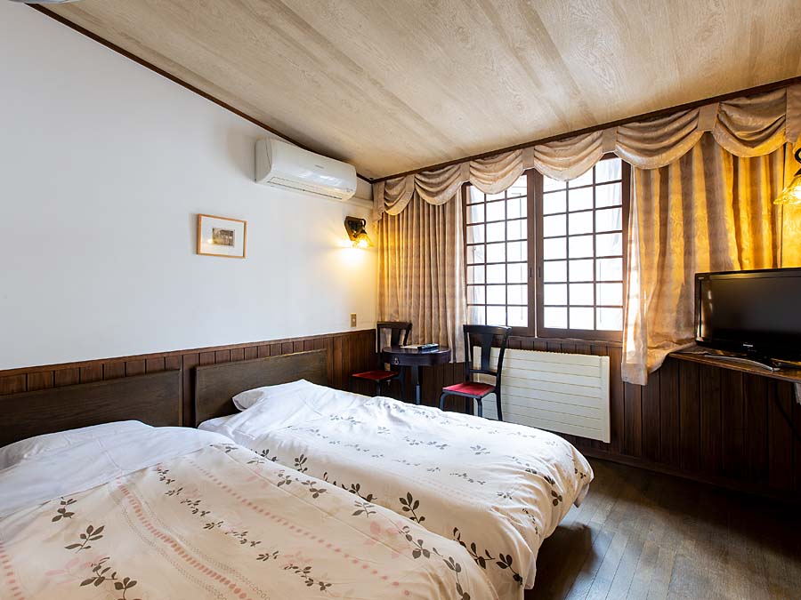 館内はヨーロッパの宿いるかのようなファンタジックな雰囲気で、客室は白と茶を基調としたデザイン。隅々まで気配りの行き届いたおもてなしで人気の宿。
