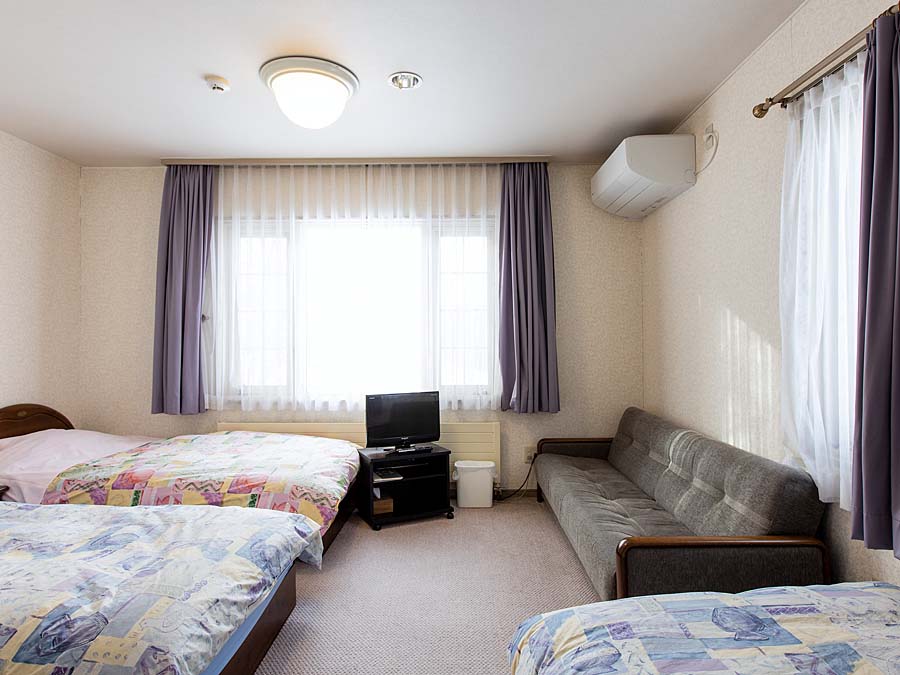 部屋は広く明るく、団体の利用も可能。乾燥室や、コインランドリー完備。連泊がお勧めです。